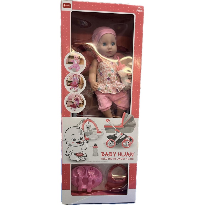 1002324 Baby HuanTake me to a sweet home and I'll be happy everyday !!Baby Huan drinks and wetMakes Baby soundsIncludes : Doll - Baby stroller and Eating accessories.