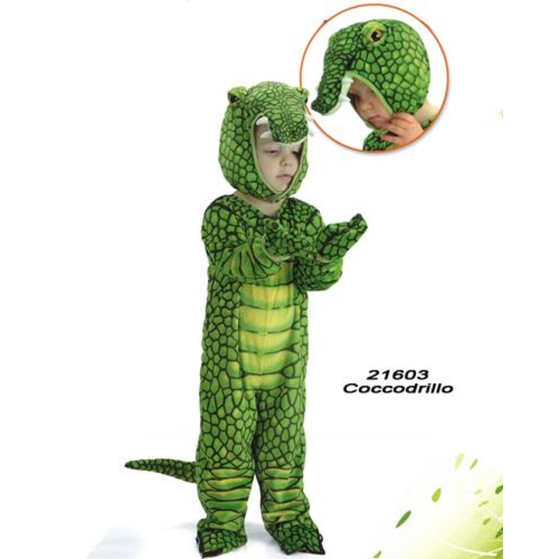 21603 CoccodrilloLittleCrocodile CostumeLow fur bodysuit with hood and gloves.Sizes available:Size - 0I: Ages 6 - 12 monthsSize -II : Ages 1 - 2 years ................. ( SOLD OUT )Packed in a polybag.Actual colour mayvary slightly from the colour of your