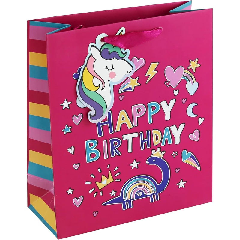 - Fantastic Gift Bag with Multi Coloured Handle and Unicorn Gift Tag