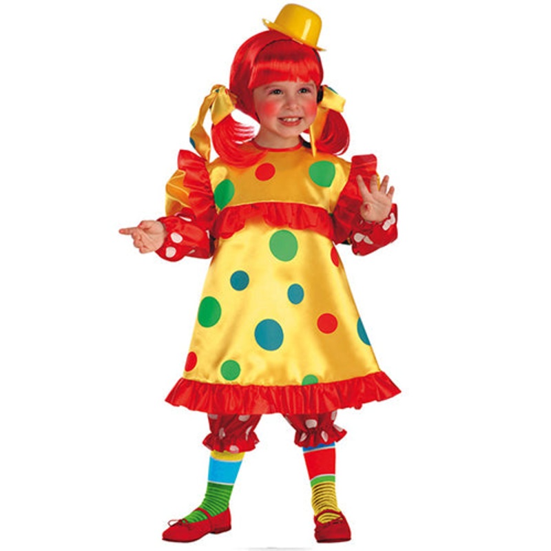 63713 Bollicina ClownGirl Polka Dot ClownCostumeIncluded in the price of the costume:Satin Printed DressPrinted Pants.Sizes available:Ages 2 - 3yearsAges 3 yearsAges 4 - 5 yearsPacked in a polybag.Actual colour mayvary slightly from the colour of your scre