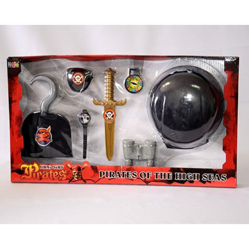 812263 Pirate SetPirates of the high seas.Set consists of :Hand hookEye patchWatchDaggerCompassBinocularsHelmet.The kids tool set will encourage role playing and is a great toy for developing hand and eye coordination.Age Group: 3 years +