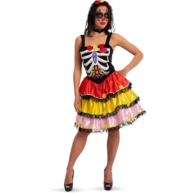 82034 Mexican SkullIncluded in the price of the costume:Stretchy Fabric and Satin Dress with VeilSizes available:One Size Fits Adults. Small - Medium - 38 - 44Packed in a polybag.Actual colour mayvary slightly from the colour of your screen.